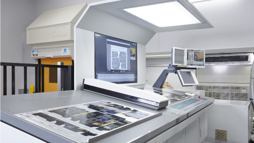 ダイレクト刷版により高精度な印刷を可能にします。デザインデータを元に、お客様に指定された色を再現するための印刷版を作成します。ただデータ通りの網点を出力するのではなく、過去のトラブルや実績を考慮し、正確で後戻りのない オペレーションを実行致します。