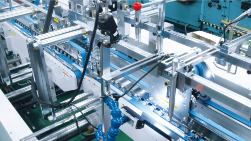 複雑化するご要望にミクロの技術で応えます。抜き型を装着した「打抜機」やのり付けまでを全自動でおこなう「製函機」により、あらゆるサイズや素材、形状のご要望に応えます。